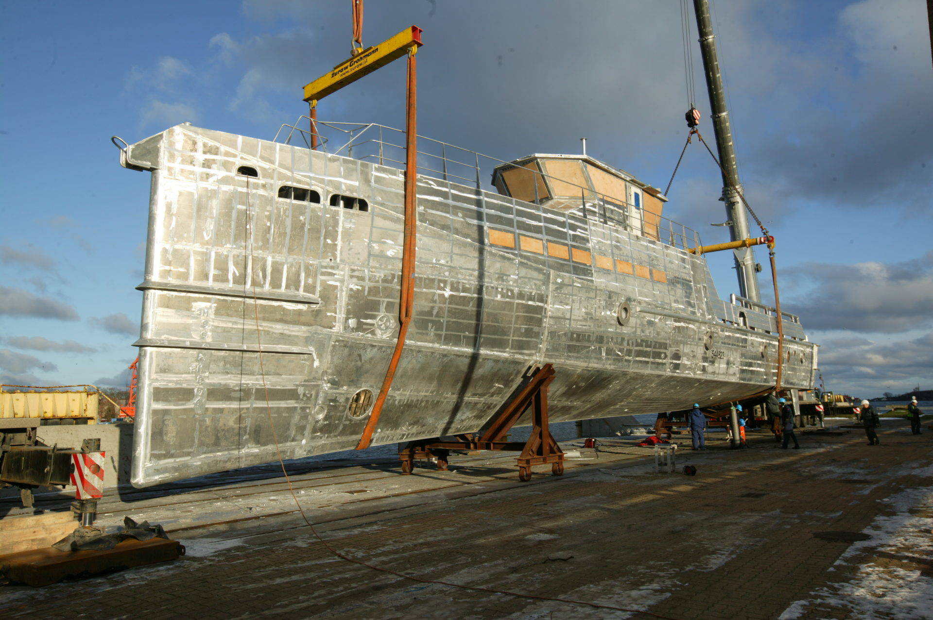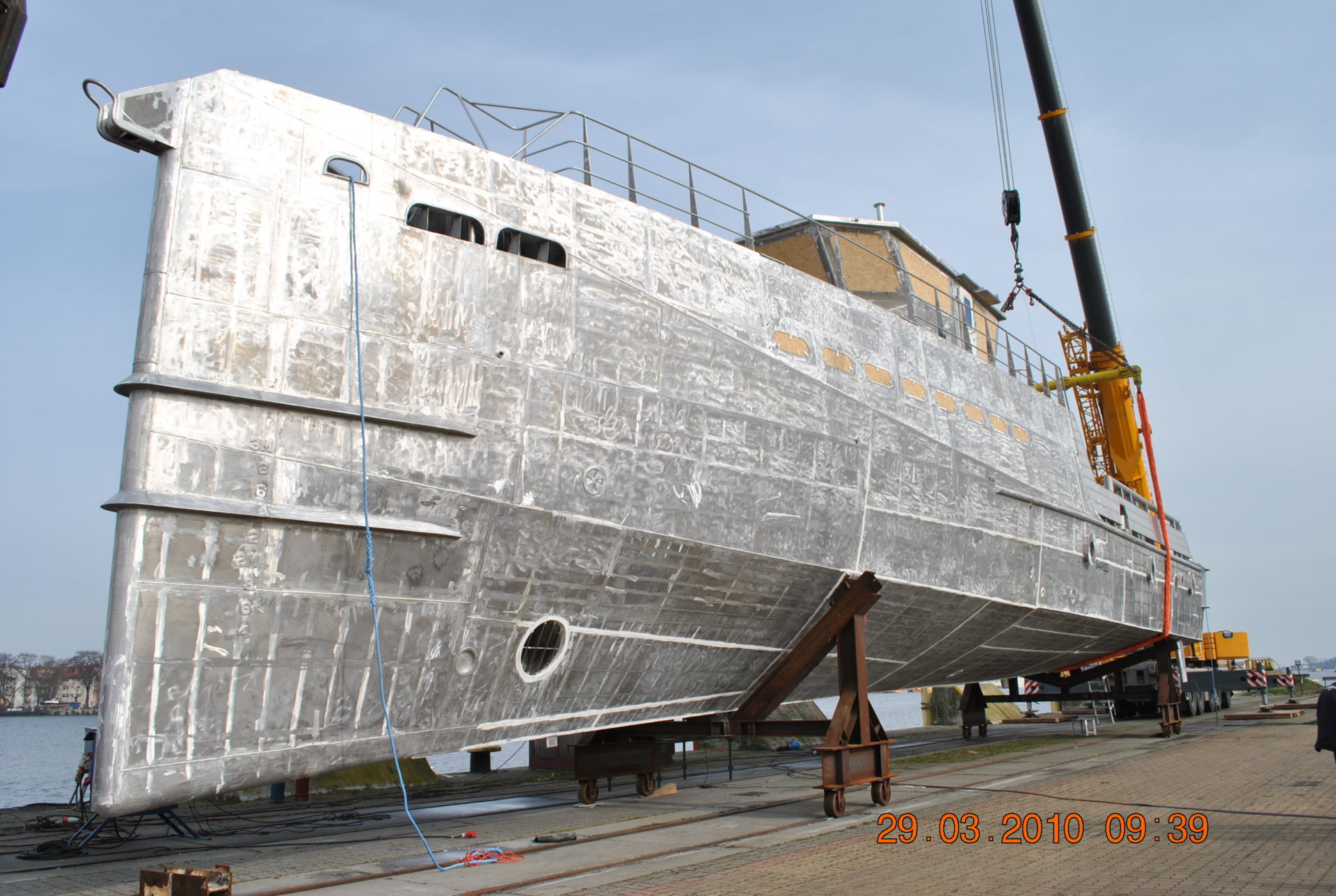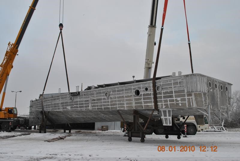 2 pieces – aluminum hull with a superstructure and the wheelhouse,